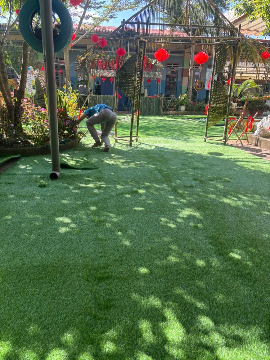 Phụ các cô trang trí hoa để chuẩn bị đón tết cổ truyền 2026