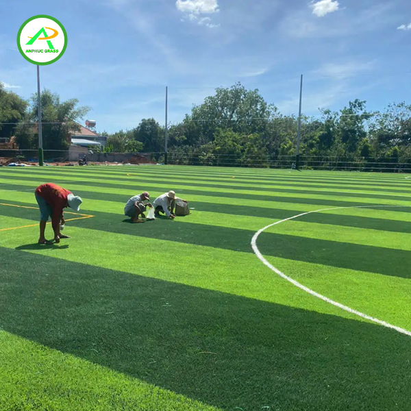 Đối với sân bóng đá, An Phúc chuyên cung cấp các loại cỏ nhân tạo có sợi PE dày, chiều cao sợi thường từ 40mm đến 60mm, mật độ sợi cao và có khả năng chống trượt tốt.